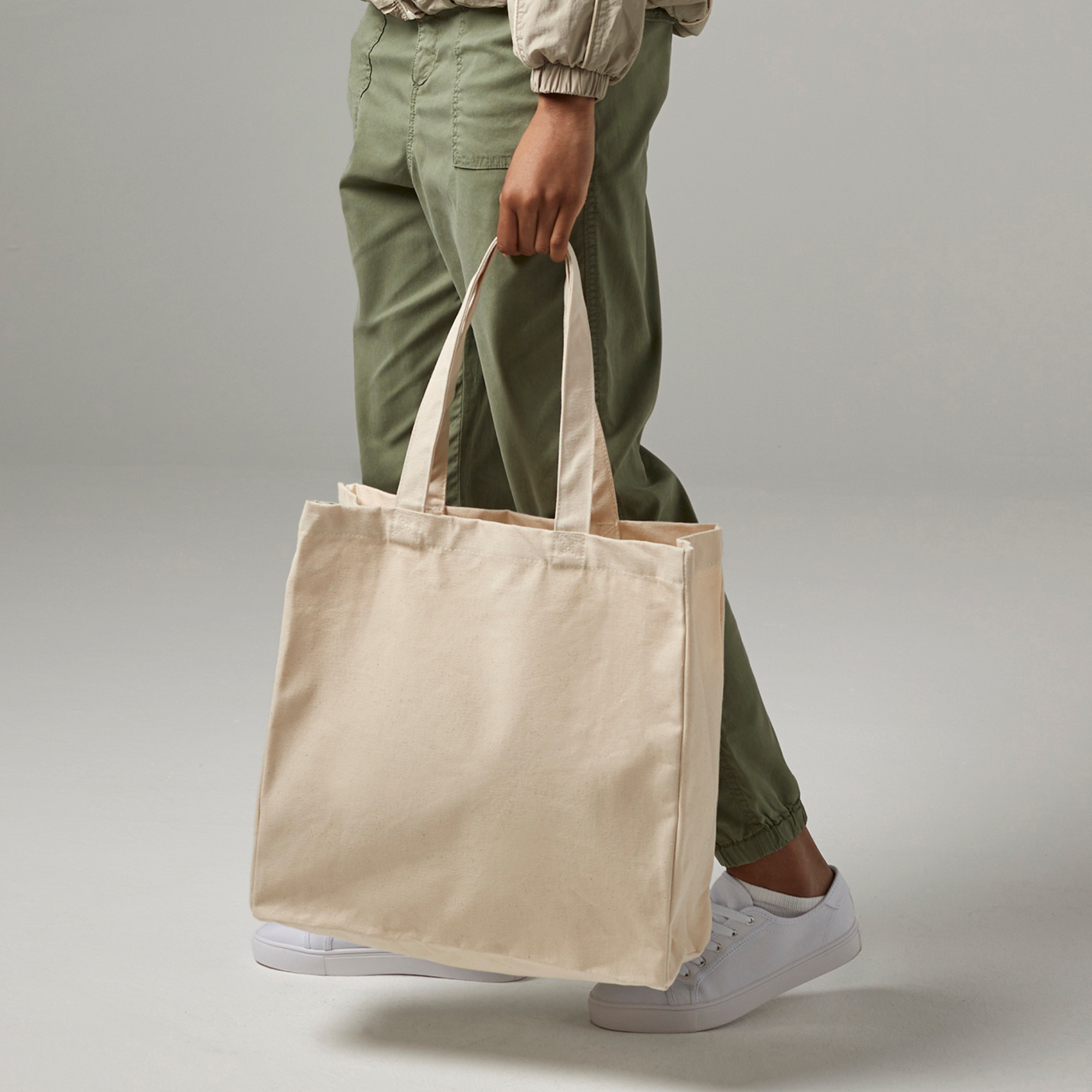 - Recycled Cotton Tote – lehká ekologická taška jako doplněk každého outfitu.